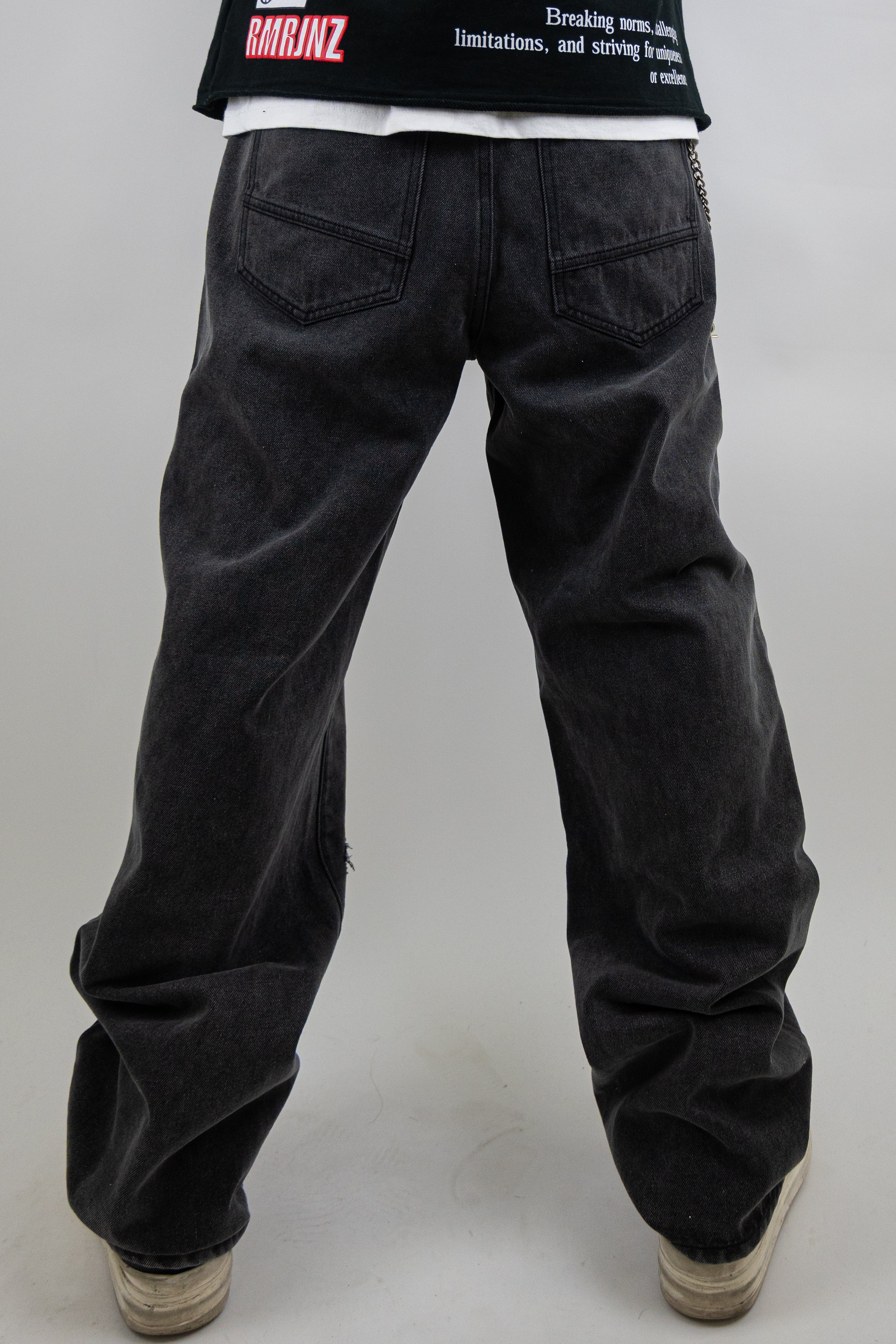AJ48B Baggy Distressed Jeans w/ detachable chain