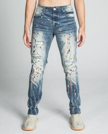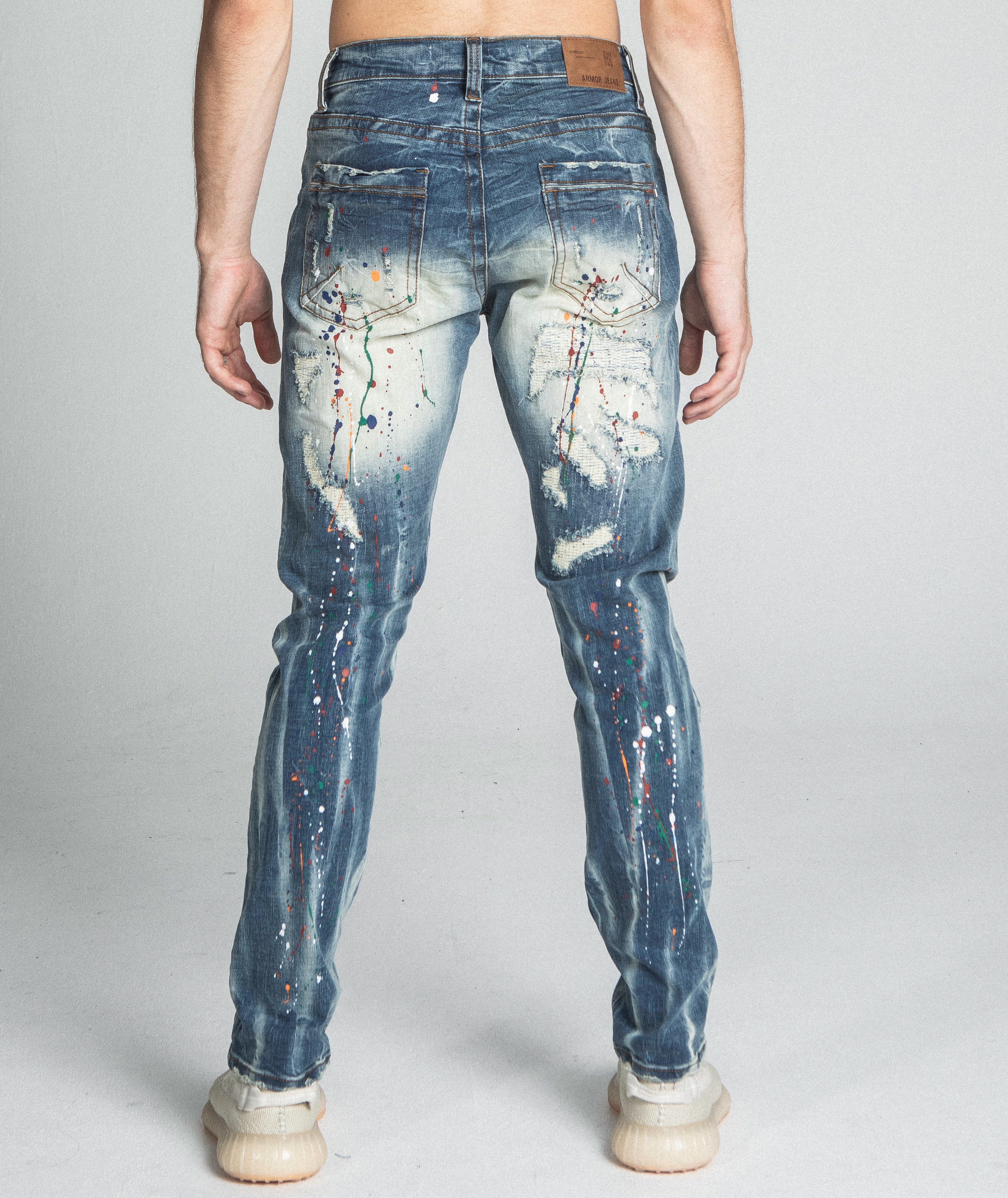 AJ738SL-1 SPLASH PAINT VINTAGE SLIM JEANS