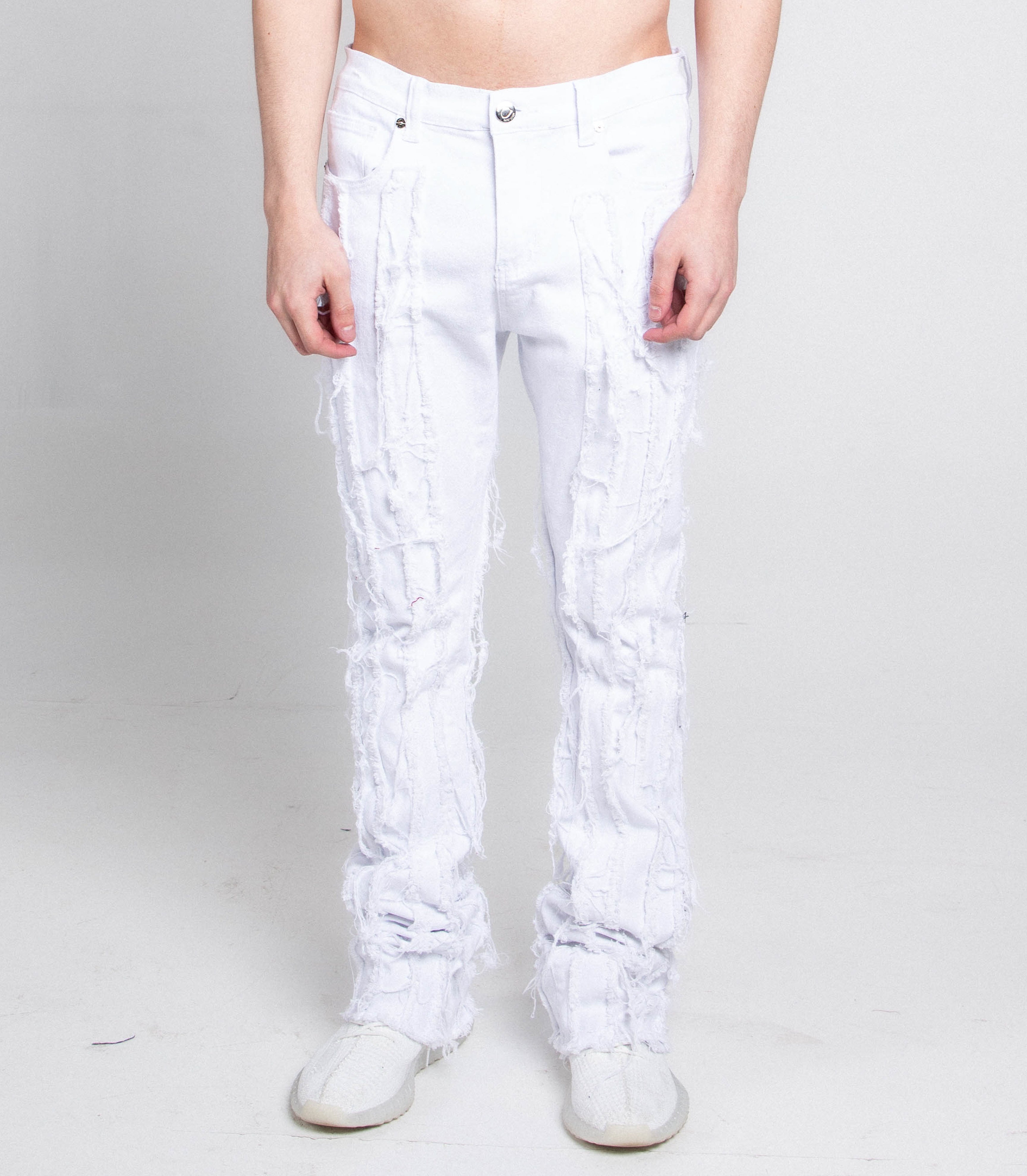 AJ672SK VERTICAL FRAYED STACKED JEANS