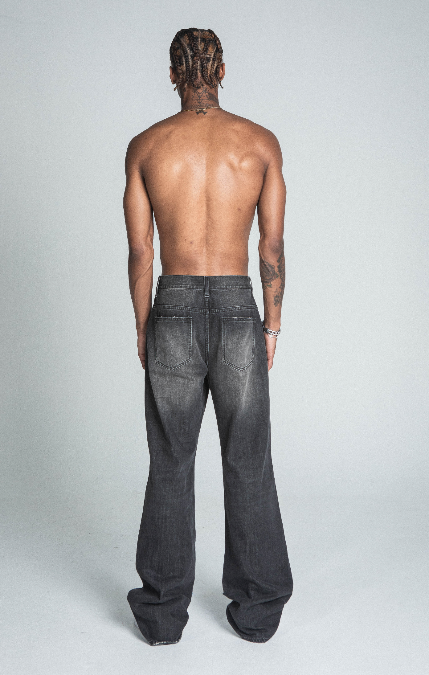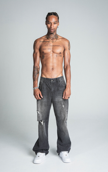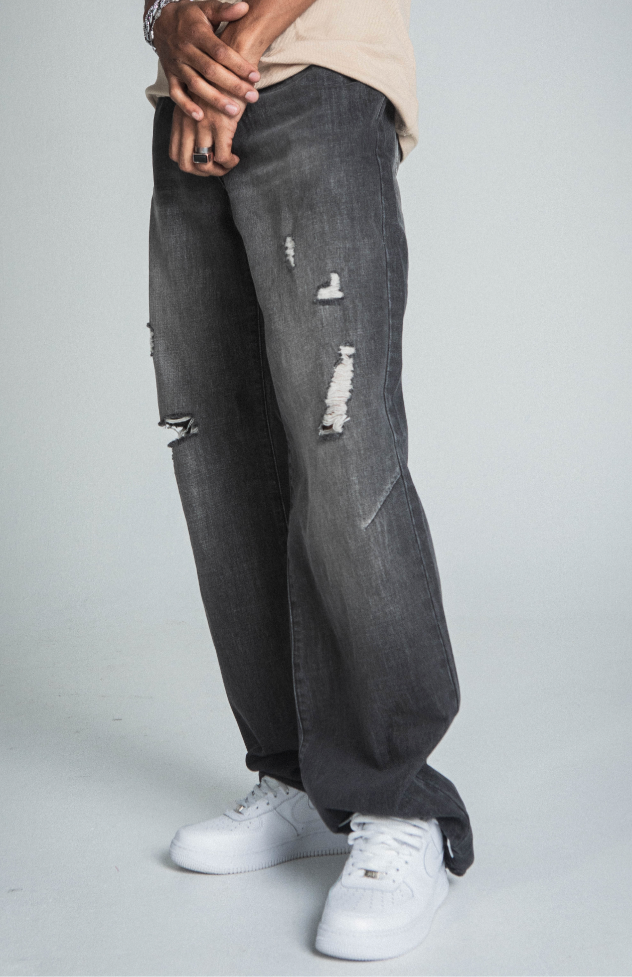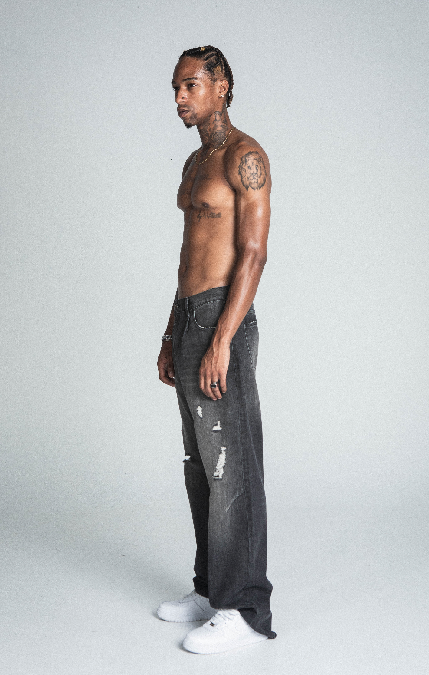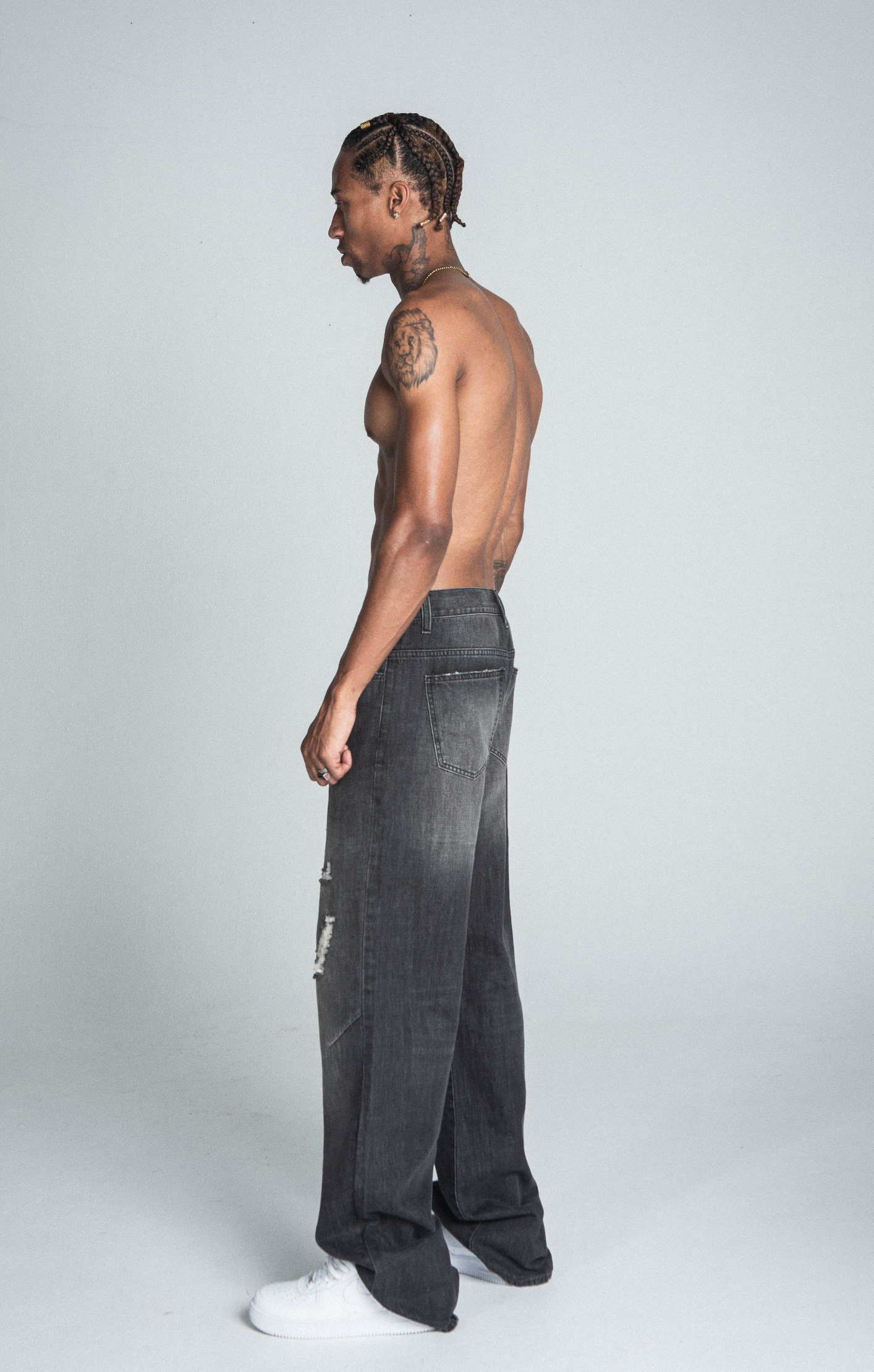 AJ09B-2 BLACK DISTRESSED BAGGY JEANS